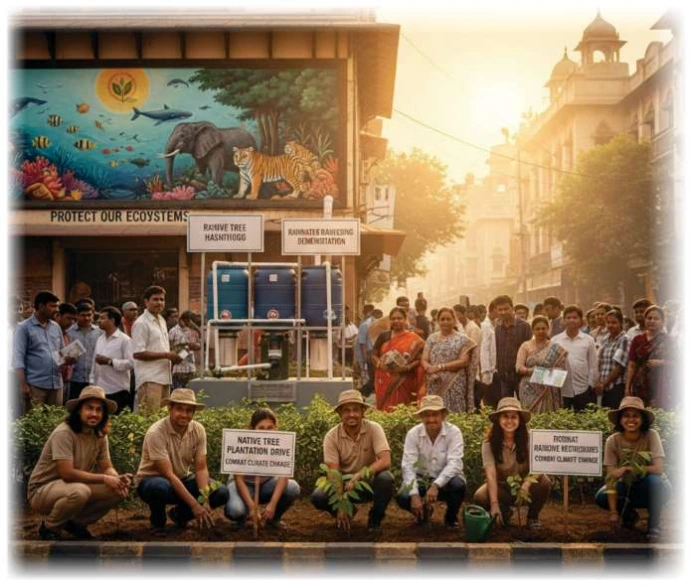 Promoting native tree plantation, rainwater harvesting, and the protection of marine and terrestrial ecosystems.